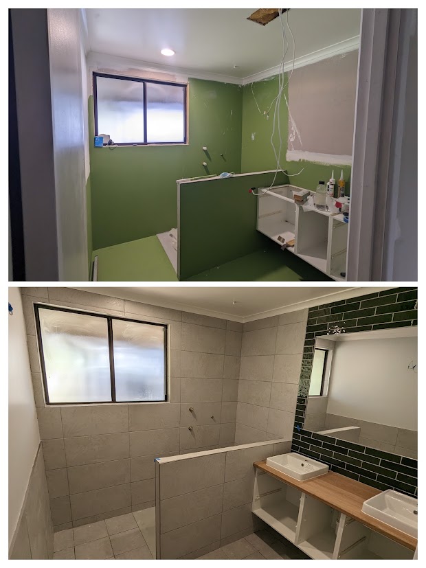 To say we were ambitious is an understatement. We had rocks in our heads! I’m guessing we were under the impression that because we would be living there at ‘The Goldie’ (rather than travelling down for long weekends here and there), we’d be able to get more done. Nope! We moved at Easter, had friends stay, did a bit of tiling, then it was back to school. 5 more weeks left of leave. We planted a couple of banana trees, did a bit more tiling, and got some walls painted to finish off the bathroom and toilet. Tick – we had an inside toilet! What a luxury! No more going over to the shed in the middle of the night to wee.